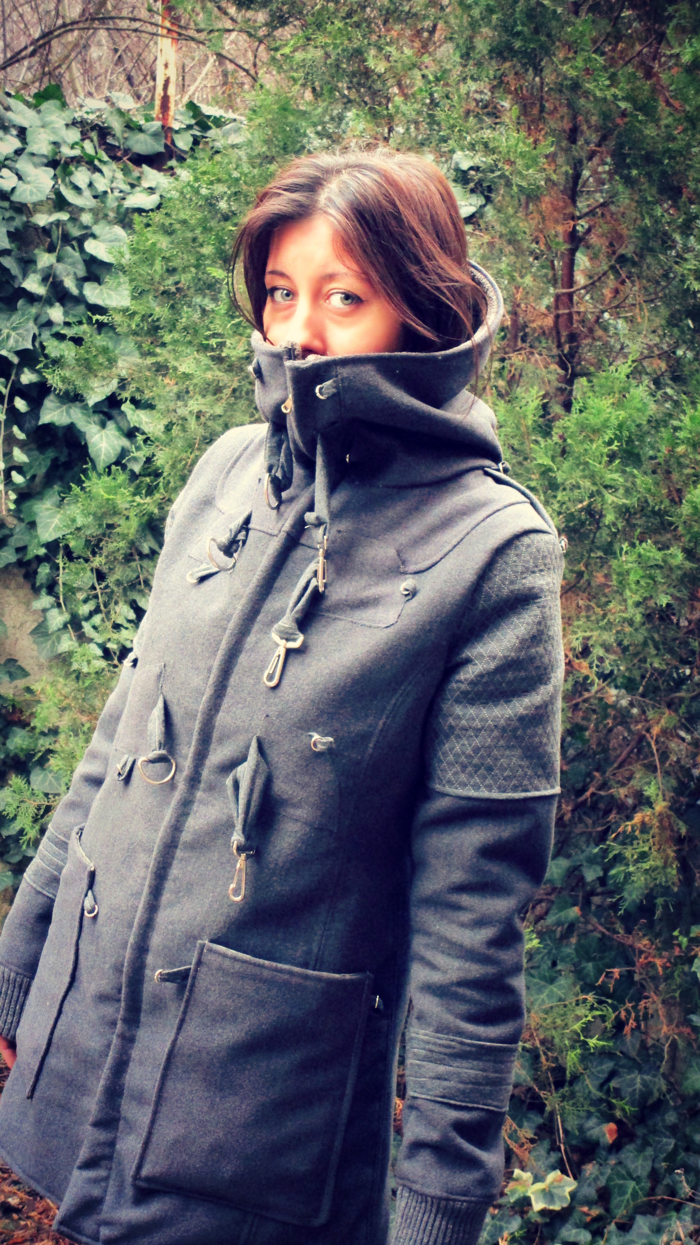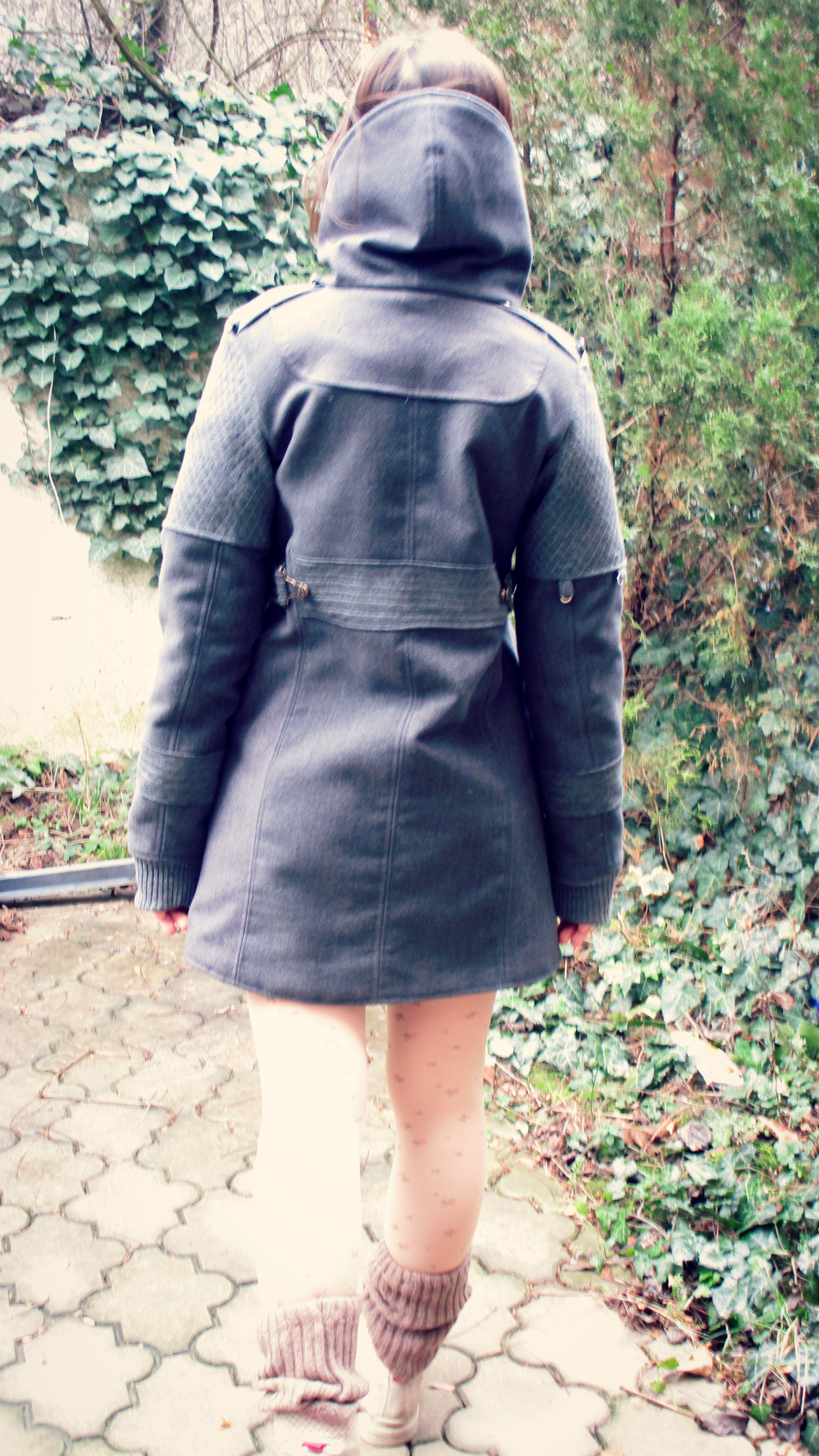 Naravno, to je morao da bude sajberpunk stil, a kako sam do sad već usavršila kapute, sašila sam sebi jedan takav kaputić. On je i punk i bajkerski i postapokaliptični kaput u isto vreme. Istovremeno je veoma topao, sasvim dovoljno topao za kraj decembra u Rusiji, jer, za slučaj da neko toga nije svestan, nove generacije ne poznaju granice koje su im ostavljene i to je, dragi ljudi, dobra stvar!