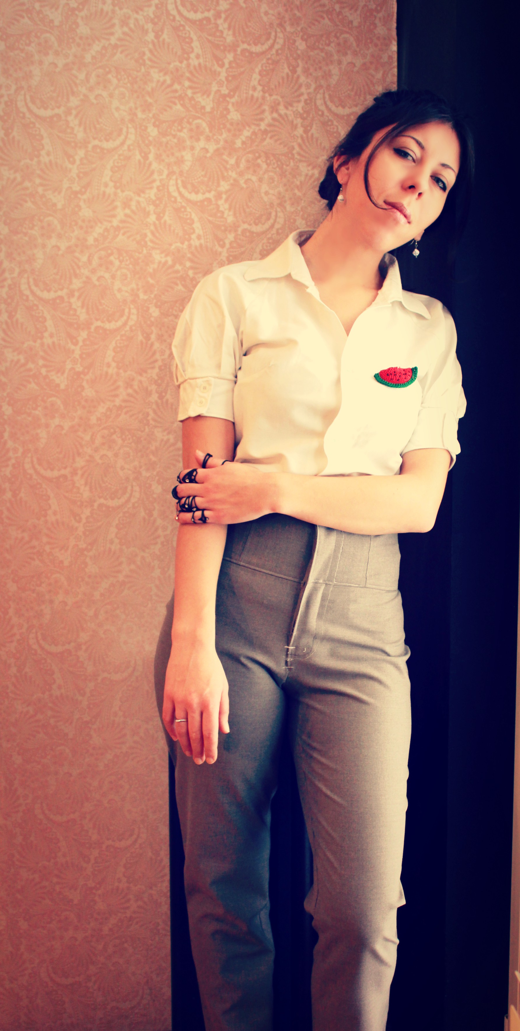 Zato sam nam napravila jedan sasvim ozbiljan outfit, jer mi smo ozbiljni mali ljudi, mi lubeničari. Isheklala sam minijaturni broš u obliku lubenice, čisto da ne bismo morali svima da objašnjavamo zbog čega umemo da vas umirimo i kako to, zaboga, znamo da je moglo da bude i gore.